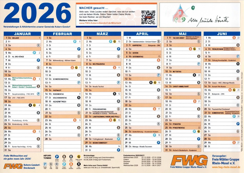 Wie in jedem Jahr hat auch in den letzten Wochen die Freie Wählergruppe Kobern-Gondorf-Dreckenach ihren…